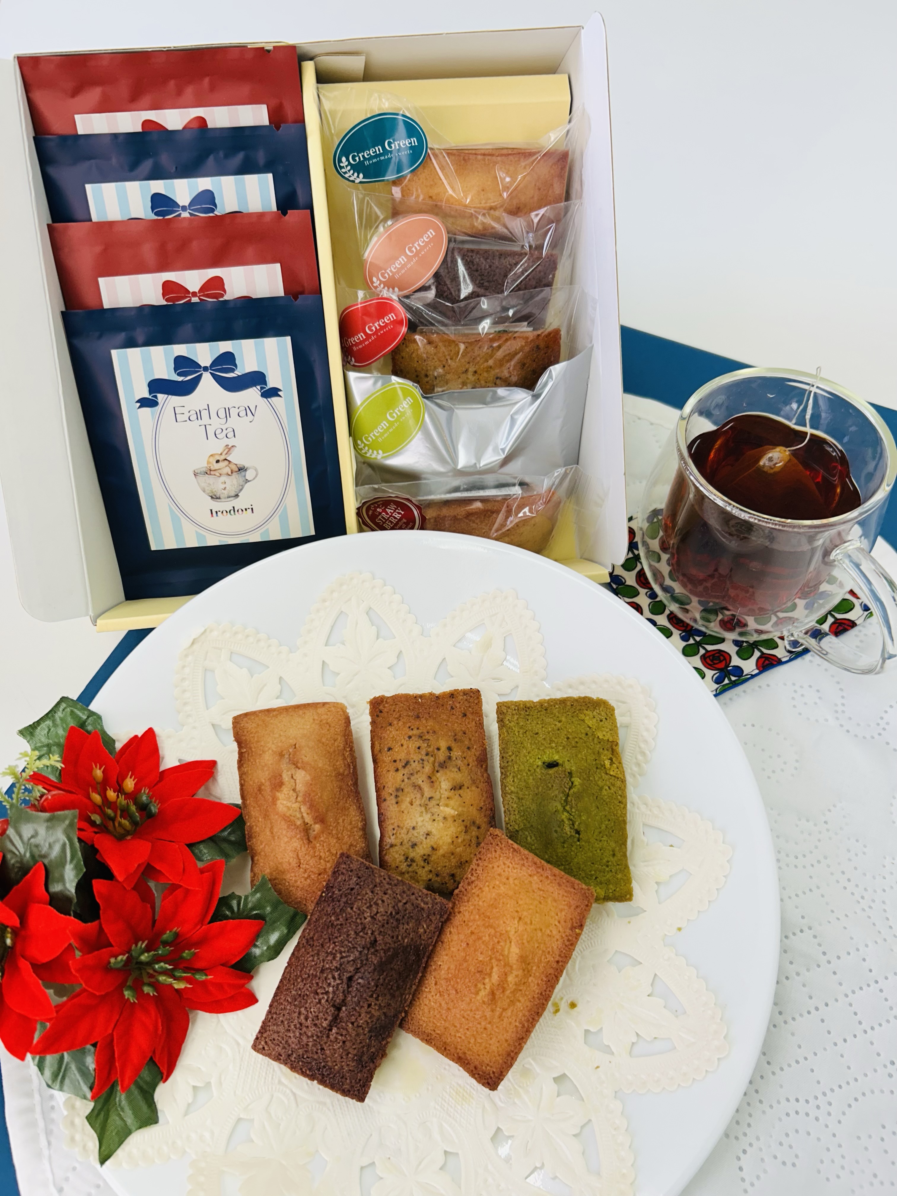秋から取り扱いを開始した新商品、最高級ランクの紅茶2種を定番のフィナンシェとセットにしました。心温まるティータイムをお楽しみください。