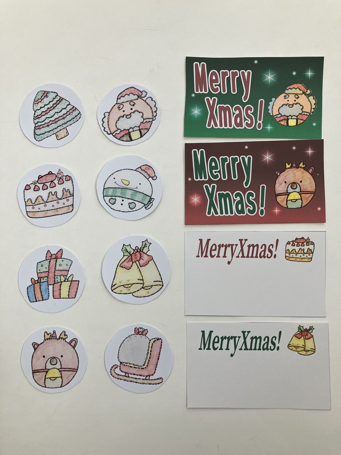 ぬくもりのある優しい手触りのフェルトを利用した小型バックに、2種類の手作りクッキーと、ころころとしたクリスマスのキャラクターが愛らしい、クリスマスカード&シールが入っています。クリスマスプレゼントにいかがですか?