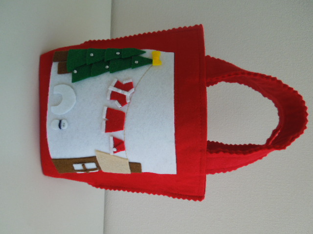① フェルトバック(H230mm×W195mm×D75mm)②クリスマスカード&シール(カード4種/シール8種/)③手作りクッキー(ここあぼーる24g/きなこぼーる24g)